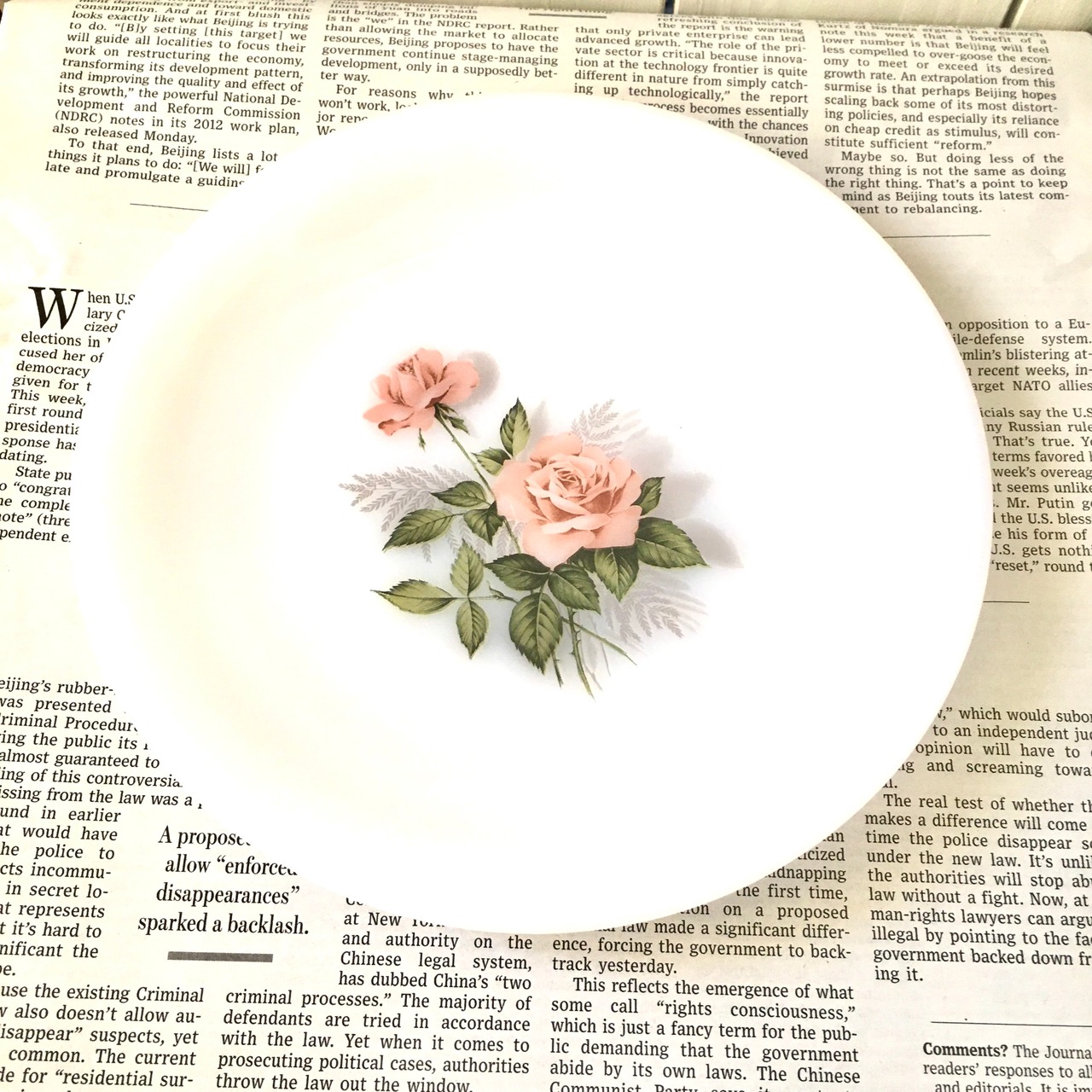 ローズ柄ケーキ皿 直径19cm